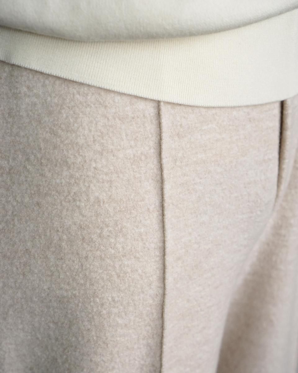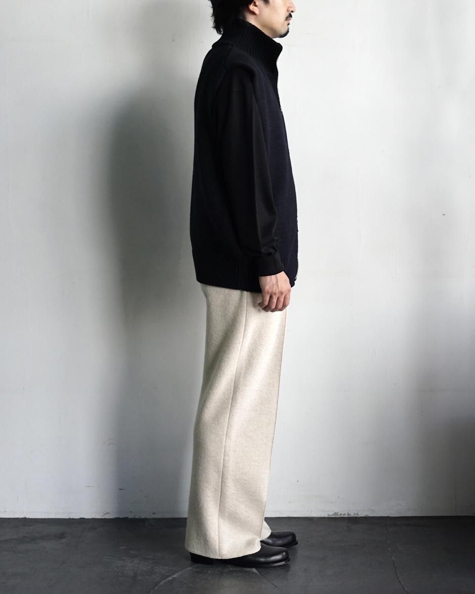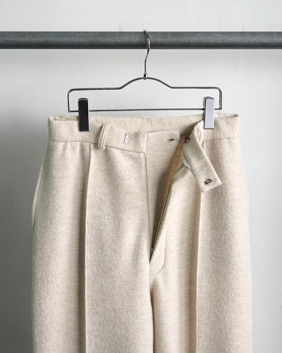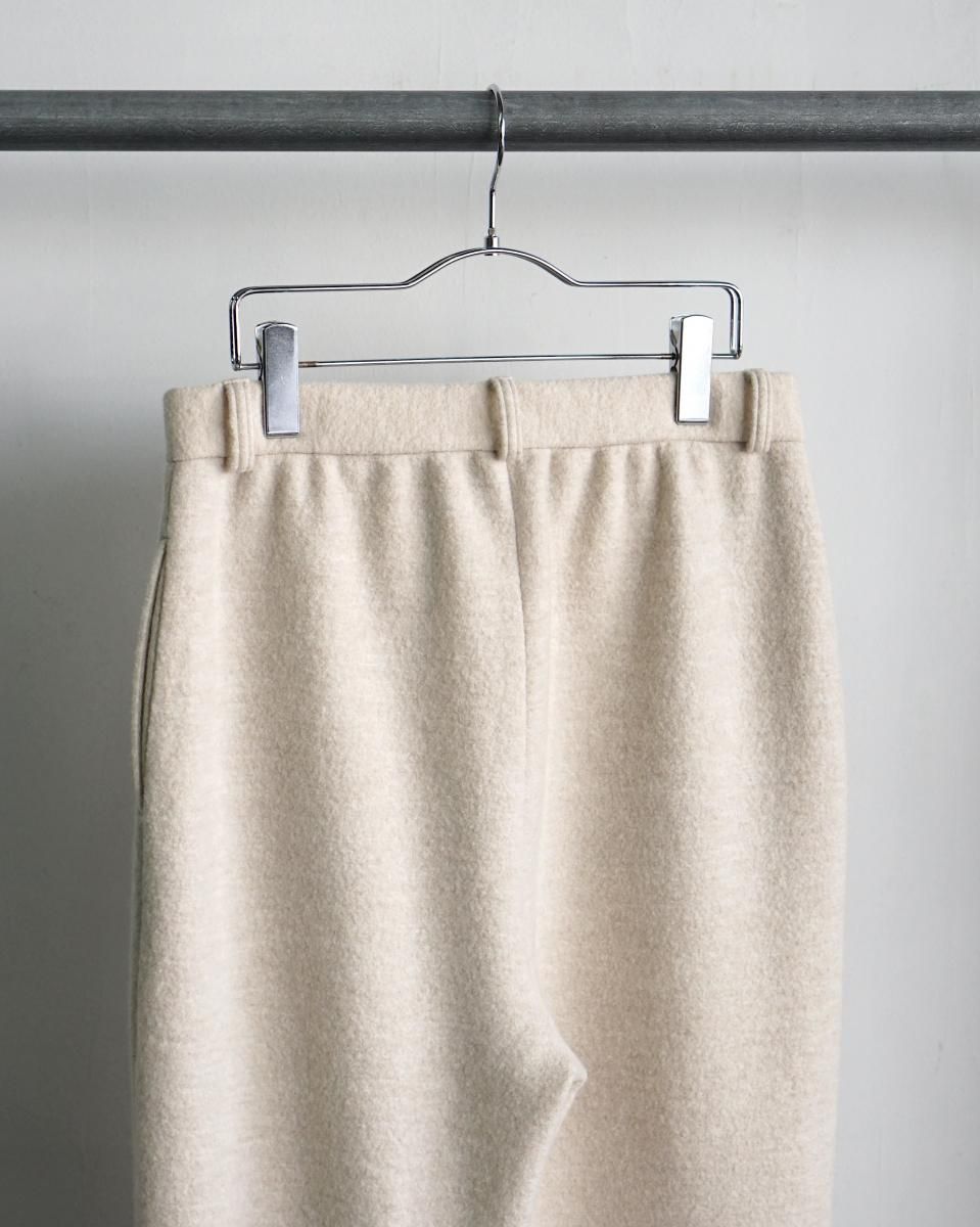 ・ウールを縮絨させて目が詰まりつつふっくらとした独特な素材感が特徴のブランド初となるニットスラックス。