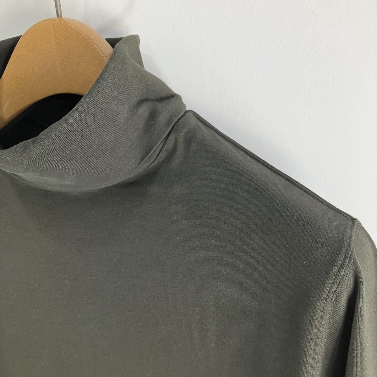 チルコロで一番人気なのはジャージジャケット?と思われる方もいらっしゃると思いますが実は・・・このハイパーストレッチのカットソーが一番人気です。カシミアタッチといわれるだけあってその柔らかな手触りはカシミアそのもの。洗濯は家で洗濯可能で洗って干した時点から全く皴がでません。とにかくいつも皴なく綺麗にきていただけるハイゲージのニット感覚で使えるカットソーです。タートル部分は全部伸ばしたあとクシュクシュとさせるとモックタートルにもなります。手触り着心地ケアどの方面を見ても最強のカットソーです。ジャケットとの相性も最高です。着用時で手で肩部分と首部分の生地を下方向に引っ張って体に添うように着用するとへんな皺がでずに綺麗に着用いただけます。