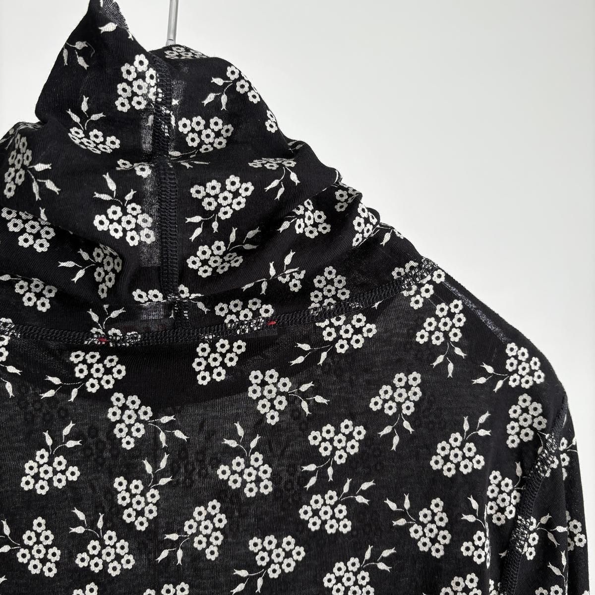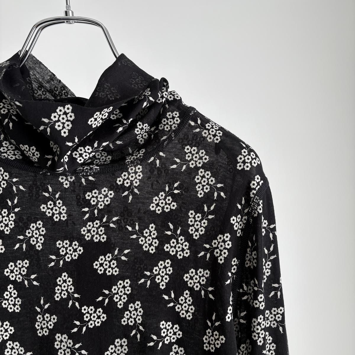 思わず微笑んでしまうほどの心地よいハイゲージコットンガーゼにオリジナルのフレンチコモン柄が施されたタートルネックカットソーです。4本針の貴重なミシンに幸運にも出会う事ができたとのことで、より肌触りに配慮された縫い代の始末となっています。
