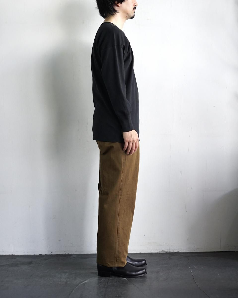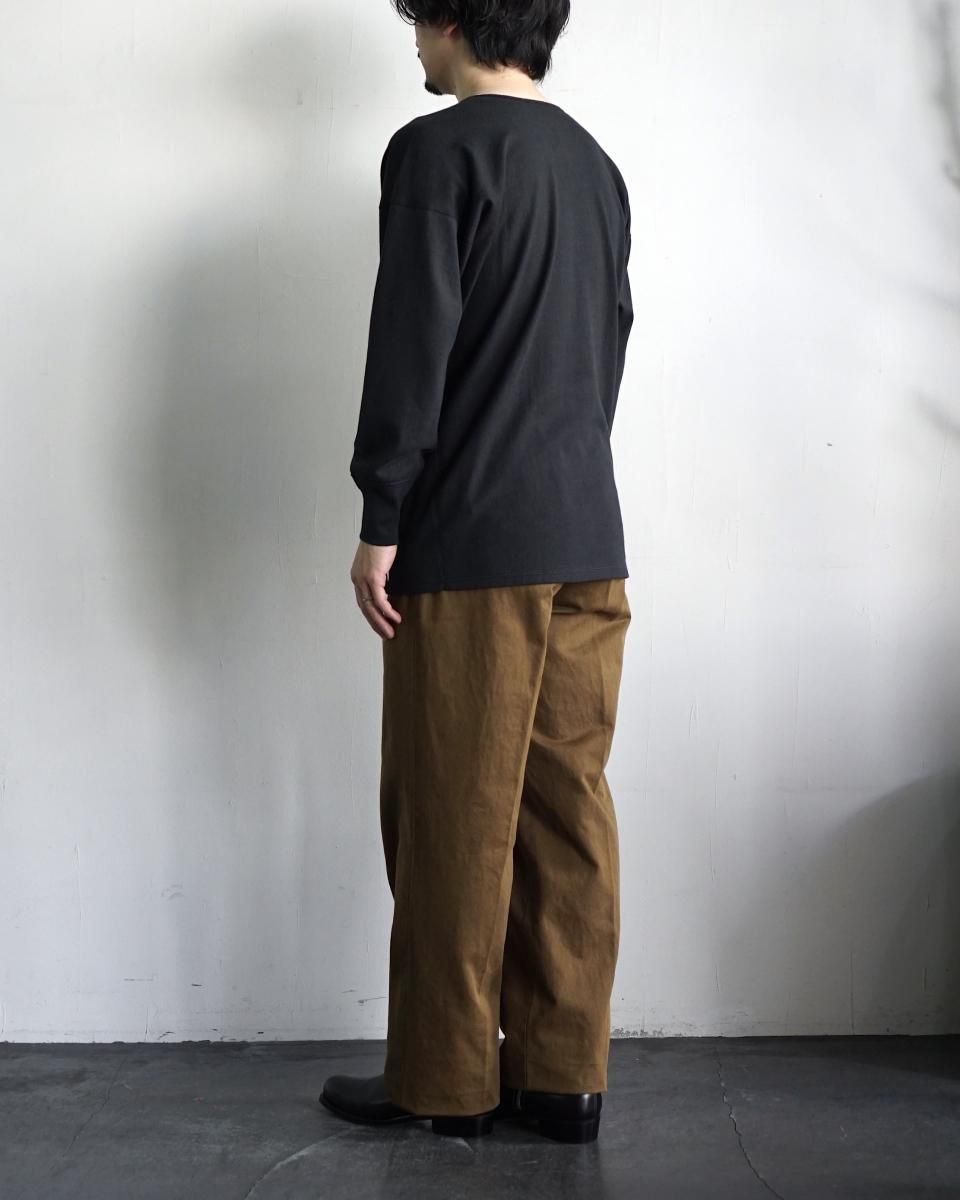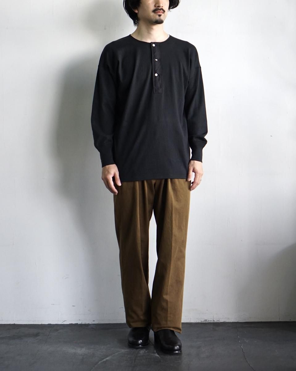 ・スーピマコットンの“落ち綿”を使用した、自然なムラ感と柔らかな肌触りが特徴の“RUSTIC JERSEY”シリーズのミディアムオンスの生地を使用したヘンリーネック。
